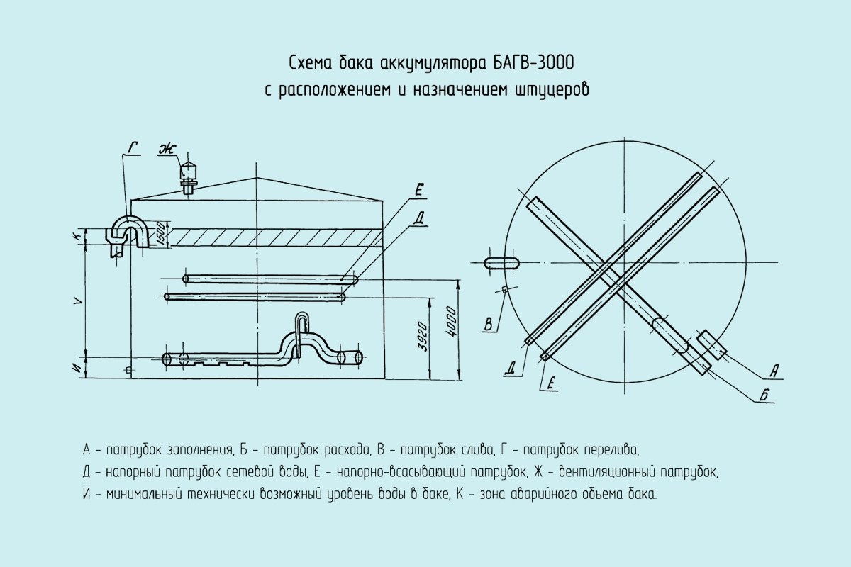 Чертеж Бак аккумулятор горячей воды БАГВ-3000 м3