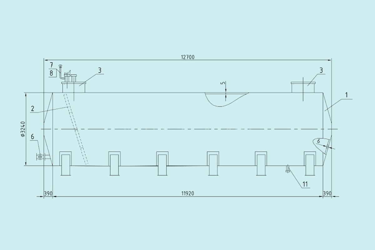 Если цистерна разбивается на несколько независимых камер, каждая из них оснащается собственным люком. Кроме прочего обслуживание емкости требует размещения лестницы, дающей доступ на верхнюю площадку. Сливные отверстия, штуцеры, отводы и подача жидкостей – все это проектируется по нуждам заказчика. В проект может включаться обязательное внедрение теплоизоляции, охлаждающего или обогревающего оснащения.