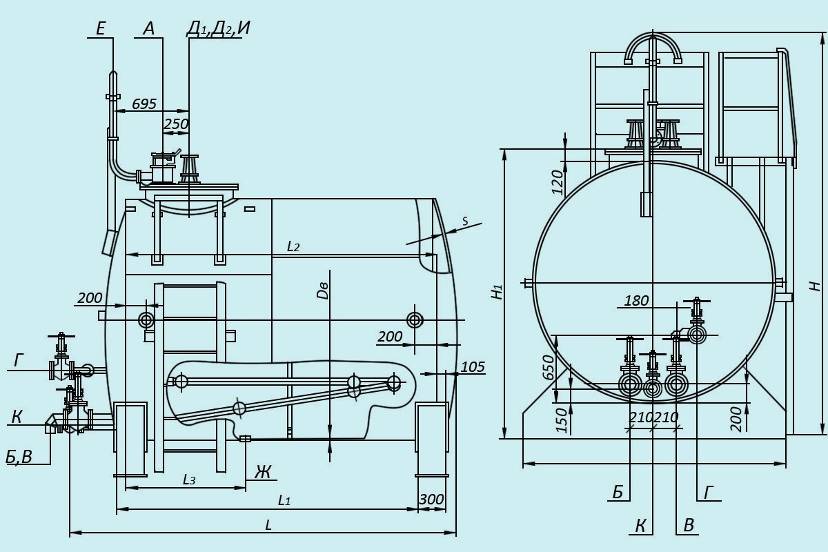 Чертеж Резервуар горизонтальный РГС-5 м3